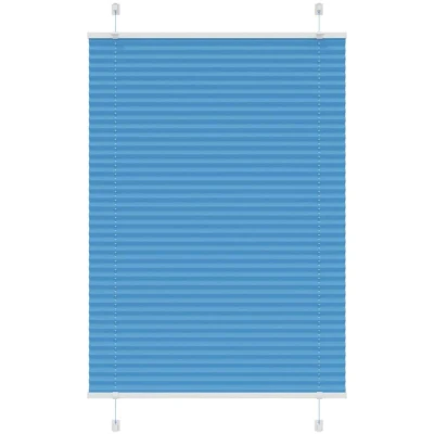 ManoManoGeneral description Elevate your room's style and functionality with this pleated blind, offering privacy and elegance. Made from 100% polyester, the pleated blind is durable, low maintenance, and built to resist wear and tear. It provides optimal privacy and glare protection with its pleated fabric, allowing you to adjust the level of privacy by moving it up or down. Technical specifications Colour: Blue Material: 100% polyester Total height: 100 cm Total width: 100 cm Fabric width: 99.4 cm (tolerance ±2mm) With difference: 0.6 cm Window frame thickness range: 0.5-2.3 cm Assembly required: Yes Compatibility and accessories Two assembly methods: with screws or without drilling using clamping brackets Mounting accessories included Usage This pleated blind is suitable for various rooms including the living room, bedroom, and office. It is easy to clean, typically requiring light dusting or wiping with a damp cloth. Other information WARNING! Young children can be strangled by loops in