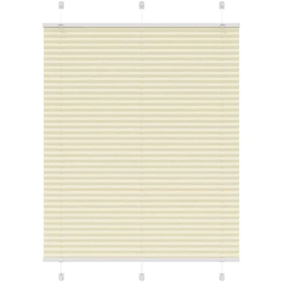 ManoManoGeneral description Elevate your room's style and functionality with this pleated blind, offering privacy and elegance. Made from 100% polyester, the pleated blind is built to last and resist wear and tear. It is easy to clean, typically requiring light dusting or wiping with a damp cloth. The blind provides optimal privacy and glare protection with its pleated fabric, allowing you to adjust the level of privacy by moving it up or down. Its sleek and modern design complements a variety of room decor, making it suitable for use in the living room, bedroom, office, and more. Technical specifications Colour: Cream Material: 100% polyester Total height: 100 cm Total width: 105 cm Fabric width: 104.4 cm (tolerance ± 2 mm) Window frame thickness range: 0.5-2.3 cm Assembly required: Yes Mounting accessories included Compatibility and accessories Two assembly methods: with screws or without drilling using clamping brackets Usage Before buying blinds, measure your window glass. To ensure