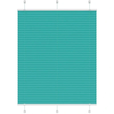 ManoManoGeneral description Elevate your room's style and functionality with this pleated blind, offering privacy and elegance. Made from 100% polyester, the pleated blind is built to last and resist wear and tear. It is easy to clean, typically requiring light dusting or wiping with a damp cloth. The blind is not transparent but also not fully darkening, providing optimal privacy and glare protection with its pleated fabric. You can adjust the level of privacy by moving it up or down. Thanks to its sleek and modern pattern design, this pleated blind effortlessly complements a variety of room decor, making it suitable for the living room, bedroom, office, and more. Technical specifications Colour: Petrol green Material: 100% polyester Total height: 100 cm Total width: 105 cm Fabric width: 104.4 cm (tolerance ± 2 mm) With difference: 0.6 cm Window frame thickness range: 0.5-2.3 cm Assembly required: Yes Compatibility and accessories Two assembly ways: with screws or without drilling using