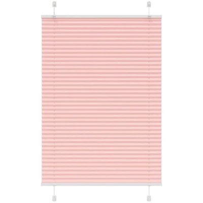 ManoManoGeneral description Elevate your room's style and functionality with this pleated blind, offering privacy and elegance. Made from 100% polyester, the pleated blind is durable, low maintenance, and built to resist wear and tear. It provides optimal privacy and glare protection with its pleated fabric, allowing you to adjust the level of privacy by moving it up or down. The sleek and modern design complements a variety of room decor, making it suitable for use in the living room, bedroom, office, and more. Technical specifications Colour: Pink Material: 100% polyester Total height: 150 cm Total width: 90 cm Fabric width: 89.4 cm (tolerance ±2mm) Window frame thickness range: 0.5-2.3 cm Assembly required: Yes Mounting accessories included Compatibility and accessories Two assembly methods: with screws or without drilling using clamping brackets Usage Before purchasing, measure your window glass. To ensure complete coverage, add 0.6 cm to the width of the window glass when calculating