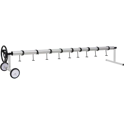 VidaXLThis pool cover roller is perfect to keep your pool cover in place, and thus keep your pool or spa clean. The roller features a slide adjustment mechanism and can easily be moved sideways to the correct position to suit the cover (suitable for covers with a maximum width of 4 m). It is equipped with 2 castors for easy transport and a wheel crank with hand knob for easy control. As the wheel crank is turned, the cover glides effortlessly onto the roller with the help of the included cords. The roller tube is made of corrosion- and weather-resistant and waterproof aluminium, which is strong and highly durable. The roller can be dismantled, and is an essential piece of swimming pool equipment.