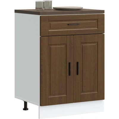 vidaXL porto brown oak engineered wood kitchen base cabinet with ample storage and adjustable feet 60x46x81.5 cm, modern unit, perfect for organizing cookwares utensils