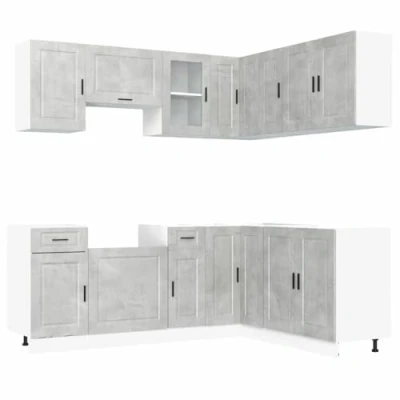 vidaXL porto concrete grey kitchen cabinet set 11 piece engineered wood storage units with adjustable feet for modern kitchens