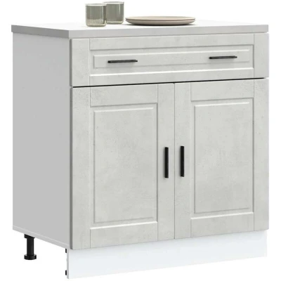 vidaXL Porto Engineered Wood Kitchen Base Cabinet Concrete Grey 80 x 46 81.5 cm Modern Design with Adjustable Shelves & Feet, Storage Solution for Kitchen, Dining, Office