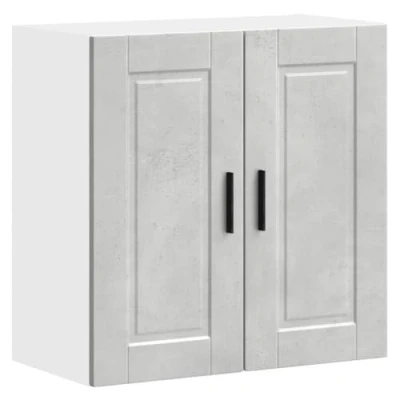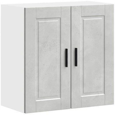 ManoManoGeneral description This kitchen wall cabinet optimizes your kitchen space, providing ample storage for your personal belongings. It features practical doors that help maintain a clean and organized space by concealing kitchen appliances and clutter. Technical specifications Colour: Concrete grey Material: Engineered wood Overall dimensions: 60 x 31 x 60 cm (W x D x H) Dimensions of each shelf: 57 x 29.5 x 27.5 cm (W x D x H) Maximum load capacity (total): 75 kg Assembly required: Yes Range name: Porto Installation This product must be used with the wall attachment device provided to prevent overturning. Screw(s) and plug(s) for inside the wall are not included; seek and use suitable screw(s) and plug(s) for your walls. If uncertain, seek professional advice and read each step of the instruction carefully. Usage Easy to maintain: The smooth surface allows for easy cleaning with a damp cloth and requires less maintenance. Wide applications: This cabinet is versatile and suitable for