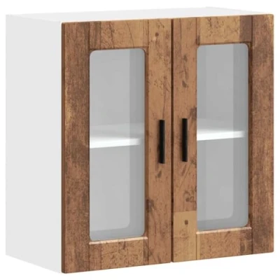 vidaXL Porto Kitchen Wall Cabinet with Glass Doors ic Old Wood Engineered Material, Mounted Storage for Plates and Bowls, 60x31x60 cm ❰Kitchen Cupboard/Pantry❱