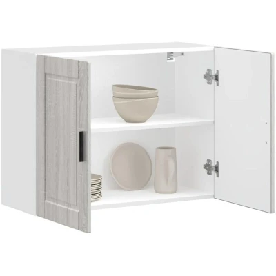 vidaXL Porto Wall Cabinet Grey Sonoma Engineered Wood Kitchen/Bedroom Storage 80x31x60cm Modern Style with Practical Doors