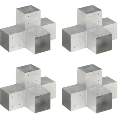 vidaXL Post Connectors 4 pcs X Shape Galvanised Metal 101x101 mm
