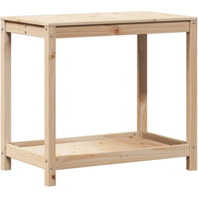 ManoManoGeneral description This wooden potting table is perfect for organizing and displaying your potted plants at home, in a garden, on a patio, or on a terrace. Made from solid pine wood, it offers sturdiness and stability while adding a rustic charm to your space. Technical specifications Material: Solid pine wood (untreated) Dimensions: 82.5 x 50 x 75 cm (L x W x H) Maximum load capacity: 60 kg Assembly required: Yes Other information To ensure the longevity of your outdoor furniture, it is recommended to protect it with a waterproof cover.