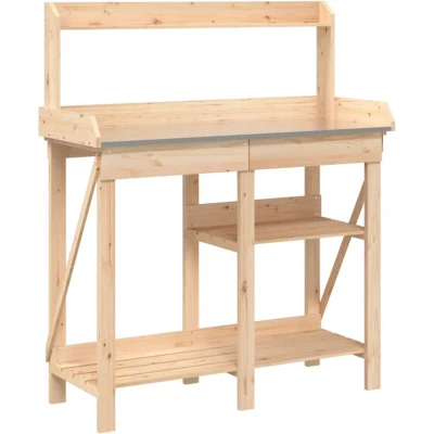 vidaXL Potting Bench with Shelves Solid Fir Wood Construction, Zinc Top Workbench, Drawer Storage for Garden, Patio, Greenhouse