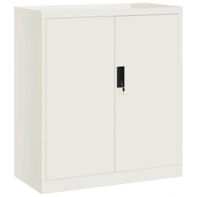 vidaXL Powder Coated Steel File Cabinet White Office Storage with Lockable System, Shelf and Ample Space, Easy to Clean Maintain