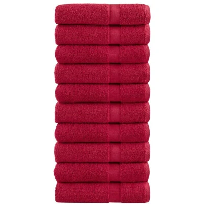 ManoManoGeneral description The Premium Bath Towels SOLUND set includes 10 high-quality towels, perfect for both domestic and commercial use. Made from 100% ring-spun cotton, these towels are designed to be super soft, durable, and fade-resistant, ensuring long-lasting performance. Technical specifications Material: 100% cotton Size: 100 x 150 cm (W x L) Weight: 600 gsm Colour: Red Range: SOLUND Delivery contains: 10 x Bath towel OEKO-TEX STANDARD 100 certified Usage Highly absorbent, ideal for drying off after baths or showers. Versatile for beauty treatments or everyday cleaning tasks. Machine washable for easy maintenance; can be washed with warm water and light soap. Other information