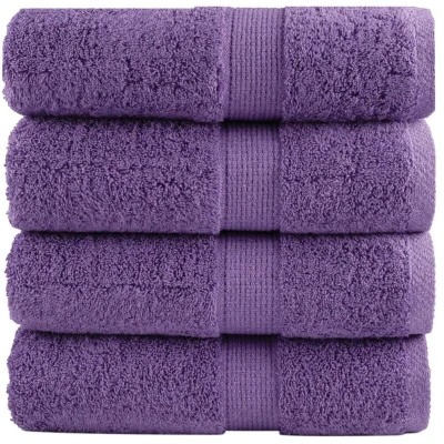 vidaXL Premium Guest Towels 4pcs 100% Cotton, Purple, 30x50 cm, 600 gsm, Highly Absorbent, Machine Washable, Multipurpose Use
