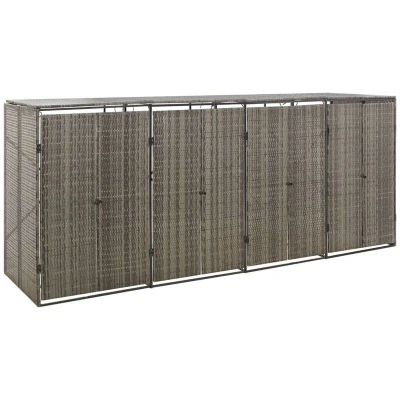 vidaXL Quadruple Wheelie Bin Shed Grey 274x80x117 cm Poly Rattan