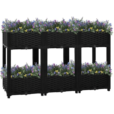 General description This raised bed is an excellent choice for growing a variety of flowers or plants, making it a great addition to your garden. Featuring 2 shelves, this planter is made of sturdy and hard-wearing polypropylene, suitable for daily outdoor use. The garden pot is deep and wide enough to hold a large amount of soil, providing ample space for your plants, vegetables, herbs, and flowers. Create a lovely backdrop for your plants with this elegant planting bed! Technical specifications Colour: Black Material: PP (polypropylene) Dimensions: 120 x 40 x 71 cm (L x W x H) Inner height: 15 cm Assembly required: Yes SKU: 316536 Other information