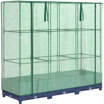 General description This raised bed with a greenhouse cover provides ample growing space with its sturdy supporting frame. Constructed from polypropylene, it features a robust iron tube frame that allows plants to grow and climb through it. The water-resistant polyethylene cover protects your plants from extreme temperatures and keeps out insects, birds, and small animals. With zippers for ventilation and ropes for securing the net, this raised bed combines functionality with a charming rattan look design, making it a great addition to any outdoor living space. Technical specifications Raised bed dimensions: 120 x 40 x 23 cm (L x W x H) Greenhouse dimensions: 120 x 40 x 110 cm (L x W x H) Tube dimensions: 120 x 40 x 120 cm (L x W x H) Overall dimensions: 120 x 40 x 123 cm (L x W x H) Raised bed colour: Blue grey Net colour: Green Raised bed material: PP (polypropylene) Net material: PE (polyethylene) Tube material: Iron Assembly required: Yes Other information