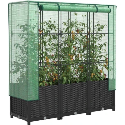 VidaXLThis raised bed with a greenhouse cover provides lots of growing space with its sturdy supporting frame.Sturdy construction: The raised bed, constructed from polypropylene, features a sturdy iron tube frame on top, enabling plants to grow and climb through it.Functional cover: The raised bed features a water-resistant polyethylene cover that protects your plants from extreme temperatures and keeps out insects, birds, and small animals.Practical design: The raised bed includes zippers for ventilation, allowing you to adjust the cover as needed. Additionally, it features ropes at the top, making it easy to secure the net to the tube.Rattan look design: The raised bed, featuring the rattan look design, adds a touch of natural charm to your outdoor living space.Wide applications: The raised bed provides ample space for your plants, vegetables, herbs, and flowers. You can use it in gardens, courtyards, balconies, and so on.