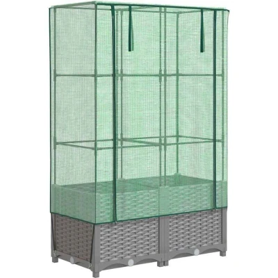 This raised bed with a greenhouse cover provides lots of growing space with its sturdy supporting frame.Sturdy construction: The raised bed, constructed from polypropylene, features a sturdy iron tube frame on top, enabling plants to grow and climb through it.Functional cover: The raised bed features a water-resistant polyethylene cover that protects your plants from extreme temperatures and keeps out insects, birds, and small animals.Practical design: The raised bed includes zippers for ventilation, allowing you to adjust the cover as needed. Additionally, it features ropes at the top, making it easy to secure the net to the tube.Rattan look design: The raised bed, featuring the rattan look design, adds a touch of natural charm to your outdoor living space.Wide applications: The raised bed provides ample space for your plants, vegetables, herbs, and flowers. You can use it in gardens, courtyards, balconies, and so on.