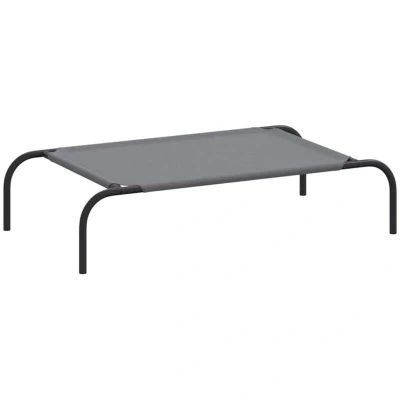 ManoManoGeneral description This elevated dog bed offers your pet a comfortable space for resting or relaxing. Its sturdy structure and moisture-resistant materials make it an ideal choice for both indoor use and travel. Technical specifications Colour: Grey Material: Oxford fabric and powder-coated steel frame Dimensions: 90 x 50 x 20 cm (L x W x H) Maximum weight capacity: 11 kg Assembly required: Yes Usage Easy to clean: The Oxford fabric can be cleaned with a damp cloth and requires minimal maintenance. Portable design: Lightweight and easy to transport, suitable for various settings. Other information