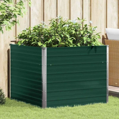ManoManoGeneral description This raised garden bed is extremely durable and beautifully made. It is deep and wide enough to hold a large amount of soil, providing ample space for your plants, vegetables, herbs, and flowers. The bottomless design ensures good drainage, preventing water buildup that can cause root rot, while also allowing plants to better absorb nutrients. You can place it on soil, grass, or concrete floors. Technical specifications Colour: Green Material: Galvanised steel Dimensions: 100 x 100 x 77 cm (L x W x H) With a grey finish With safety edge fold Easy assembly Other information