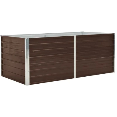 General description This raised garden bed is extremely durable and beautifully made. It is deep and wide enough to hold a large amount of soil and provide ample space for your plants, vegetables, herbs, and flowers. Thanks to its simple rectangular design, it will make a stylish addition to any balcony, deck, or patio. Made of galvanised steel and equipped with interior support brackets, this planter is very sturdy and durable. The rim of the planter features an edge fold design, ensuring no dangerous sharp edges are exposed. This product is easy to assemble. Technical specifications Colour: Brown Material: Galvanised steel Dimensions: 160 x 80 x 45 cm (L x W x H) With a brown finish With safety edge fold Other information