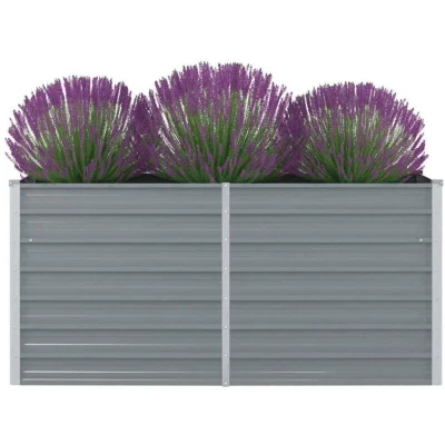 vidaXL Raised Garden Bed in Galvanised Steel Spacious, Durable, and Stylish Rectangular Planter for Outdoor Gardening Grey