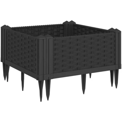 vidaXL Raised Garden Planter with Pegs Black Rattan Look Polypropylene Flower Bed for Patio, Deck, Weather Resistant