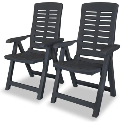 vidaXL Reclining Garden Chairs Set of 2, Durable Plastic Construction, 4 Positions, Foldable Design, Lightweight and Weather Resistant Anthracite