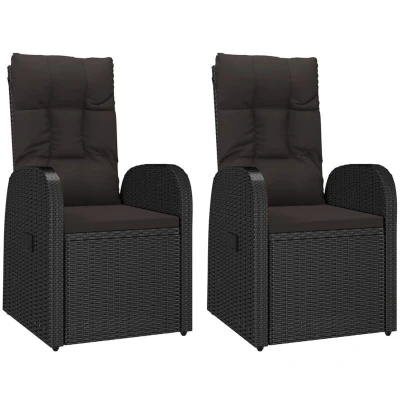 vidaXL Reclining Garden Chairs with Cushions 2 pcs Black Poly Rattan