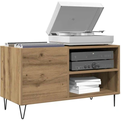 Crafted from moisture-resistant engineered wood, this record cabinet is built for stability and durability. The smooth surface prevents warping and splitting, ensuring that your cabinet remains in excellent condition over time. The artisan oak finish adds a timeless and classic appeal, seamlessly blending with modern interiors. For added strength and aesthetic appeal, the cabinet features robust iron feet that lend an industrial touch while ensuring the overall stability of the structure.