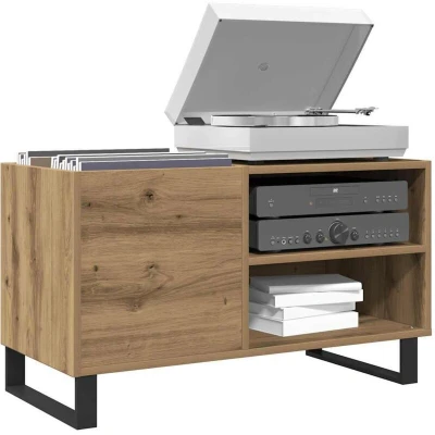 ManoManoGeneral description Store and showcase your vinyl records with this practical and classic record cabinet. Designed to provide ample storage space, it keeps your music collection well-organized while adding a touch of elegance to your interior. Technical specifications Colour: Artisan oak Material: Engineered wood Dimensions: 84.5 x 38 x 48 cm (W x D x H) Maximum weight capacity (total): 60 kg Assembly required: Yes Other information