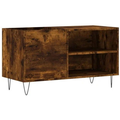 ManoManoGeneral description Store and show off your vinyl records with this practical and classic record cabinet. The cabinet is designed to provide ample storage space for LP records while keeping your music collection well-organized. Its sturdy top is perfect for placing your record player or other electronics, and the iron feet add an industrial style to your interior while ensuring stability. Technical specifications Colour: Smoked oak Material: Engineered wood, iron Overall dimensions: 85 x 38 x 48 cm (W x D x H) Feet height: 10 cm Assembly required: Yes Other information
