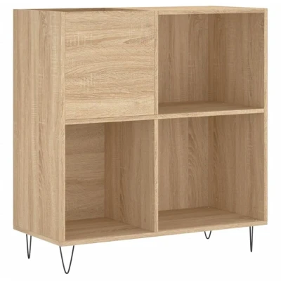 General description Store and show off your vinyl records with this practical and classic record cabinet. The Sonoma oak finish adds a touch of elegance to your space while providing a functional storage solution. Technical specifications Colour: Sonoma oak Material: Engineered wood, iron Overall dimensions: 84.5 x 38 x 89 cm (W x D x H) Feet height: 10 cm Assembly required: Yes Usage Ample storage space for LP records, keeping your music collection well-organized. The sturdy top is ideal for placing your record player or other electronics. Iron feet add an industrial style while ensuring stability. Other information Warning: To prevent it from being overturned, this product must be used with the provided wall attachment device.