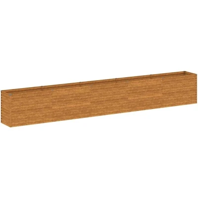 ManoManoGeneral description This garden raised bed is perfect for DIY enthusiasts looking to enhance their gardens, balconies, or patios. Made from durable Corten steel, also known as weathering steel, it develops a rusty protective layer against corrosion when exposed to the elements, eliminating the need for painting and reducing maintenance costs. Its distinctive brown color adds an eye-catching element to your outdoor space, while its exceptional durability ensures it will withstand the test of time. Technical specifications Material: Corten steel Dimensions: 482 x 50 x 69 cm (L x W x H) Colour: Rusty Assembly required: Yes Usage Ample space for plants, vegetables, herbs, and flowers. Interior support brackets provide sturdiness and stability. Safe edge fold design prevents exposure to sharp edges. Ideal for decorative purposes in gardens. Other information This product arrives in a normal metal color and will develop rust over time. You can accelerate the rusting process by spraying it