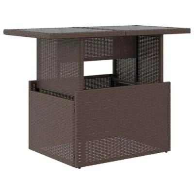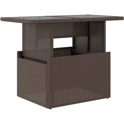 vidaXL Rectangular Garden Table with Adjustable Glass Top Brown Poly Rattan for Outdoor/Patio Dining and Coffee