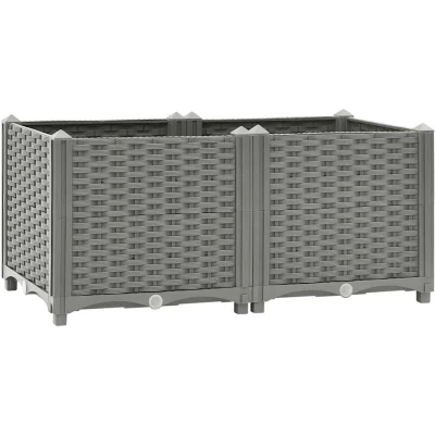 vidaXL Rectangular Raised Bed in Light Grey Lightweight and Durable Polypropylene Flower Box for Outdoor Garden Patio