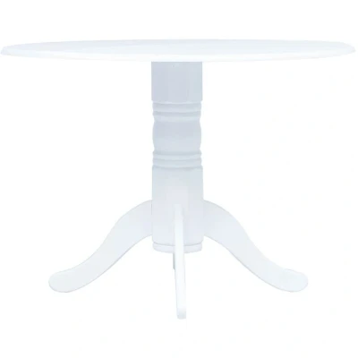General description This stylish wooden dining table is an excellent addition to your dining room or kitchen. Made from solid rubber wood, it offers exceptional durability and a hardwearing structure. The MDF table top provides a stable surface for meals, while the polished, painted, and lacquered finish ensures easy cleaning with a damp cloth. Its simple elegance enhances everyday dining experiences. Technical specifications Colour: White Material: Solid rubber wood frame + MDF top Dimensions: 106 x 75 cm (Diameter x H) Finish: Polished, painted, and lacquered Installation The dining table is easy to assemble. Other information