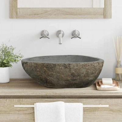 ManoManoThis Modern Riverstone basin brings the natural beauty of river stone indoors. Designed for indoor use only, it features a gently rounded oval shape that fits a variety of bathroom layouts. The polished surface displays a soft light grey tone, emphasizing the stone’s natural texture and durability. Sturdy and easy to maintain, the basin is a practical choice for everyday use. Natural River Stone Material The basin is crafted from genuine river stone, valued for its solid structure and naturally varied texture. This natural material offers dependable durability and a refined, timeless appearance, making it a distinctive element in the bathroom. Simplified Installation Featuring a pre-drilled drain hole, this basin is designed for straightforward installation with standard plumbing setups. The structure helps reduce installation complexity and supports reliable performance in everyday use. Water & Stain Resistance The surface is treated to improve resistance to water and common stains,
