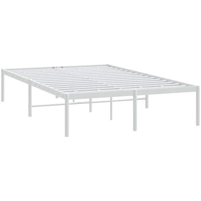 vidaXL Robust 4FT Small Double Bed Frame, Powder Coated Steel, Sturdy and Durable with Extra Storage Space, Elegant White Design for Bedroom