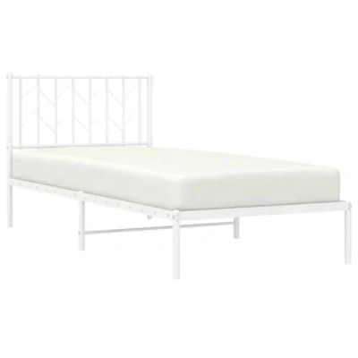 vidaXL Robust Metal Bed Frame with Supportive Headboard, Elegant White Bedstead Base, Single 90x190 cm, Additional Under Storage Space