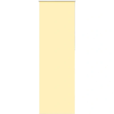 ManoManoGeneral description Elevate your room's style and functionality with this roller blind, providing privacy, light control, and heat regulation. Made from 100% polyester, the roller blind is durable, low maintenance, and easy to clean, typically requiring light dusting or wiping with a damp cloth. The blackout design ensures privacy and partially blocks direct sunlight, allowing you to regulate indoor temperature according to your needs. Technical specifications Colour: Yellow Material: 100% polyester Top rail material: Aluminium Overall height: 230 cm Overall width: 80 cm Fabric width: 75.7 cm (tolerance is ±4mm) Width difference: 4.3 cm Blackout feature Chain connector included Two assembly methods: with screws or without drilling using clamping brackets No-drill clamping brackets for window frames with a rebate thickness of 1.6 to 2.5 cm Mounting accessories included Assembly required: Yes Installation You can attach the roller blind to the wall or window using screws or without
