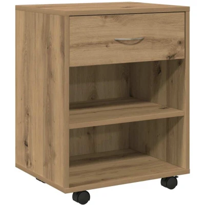 vidaXL rolling cabinet filing storage artisan oak engineered wood mobile file with lockable swivel wheels/shelf/drawer for office/home