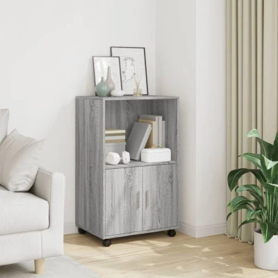 vidaXL Rolling Cabinet Office File Storage Grey Sonoma Engineered Wood