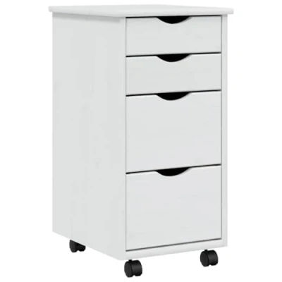 vidaXL Rolling Cabinet Office with Drawers White Solid Wood Pine MOSS