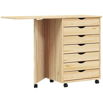 vidaXL Rolling Cabinet with Desk MOSS Clear Varnish Solid Pine wood