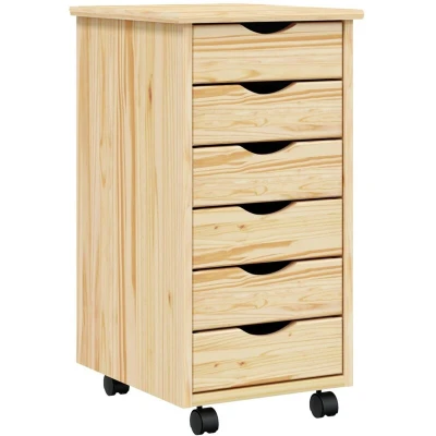 vidaXL Rolling Cabinet with Drawers MOSS Clear Varnish Solid Pine wood