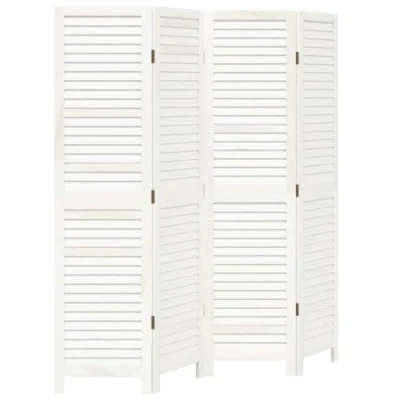 vidaXL Room Divider 4 Panels White Solid Wood Paulownia
