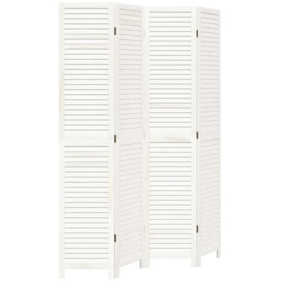 vidaXL Room Divider 4 Panels White Solid Wood Paulownia
