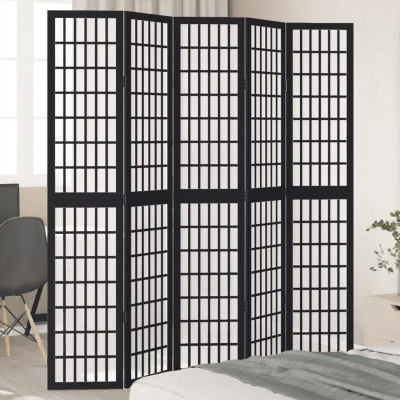vidaXL Room Divider 5 Panels Black Solid Wood Paulownia
