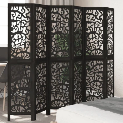vidaXL Room Divider 6 Panels Black Solid Wood Paulownia
